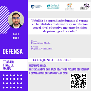 La modalidad de ambas defensas será híbrida. Presencialmente, será en el salón de actos de la Facultad de Psicología y, virtualmente, por la plataforma Zoom escaneando el código [...]